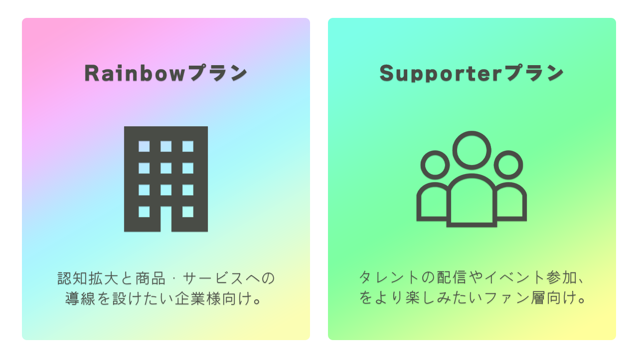 広告事業といった強みで、他社のVTuber事務所と合同でのコラボカフェの実施やアパレルブランドと共同企画のデザインコンペの開催などプロモーションで多方面にタレント活動のバックアップを行なっている。